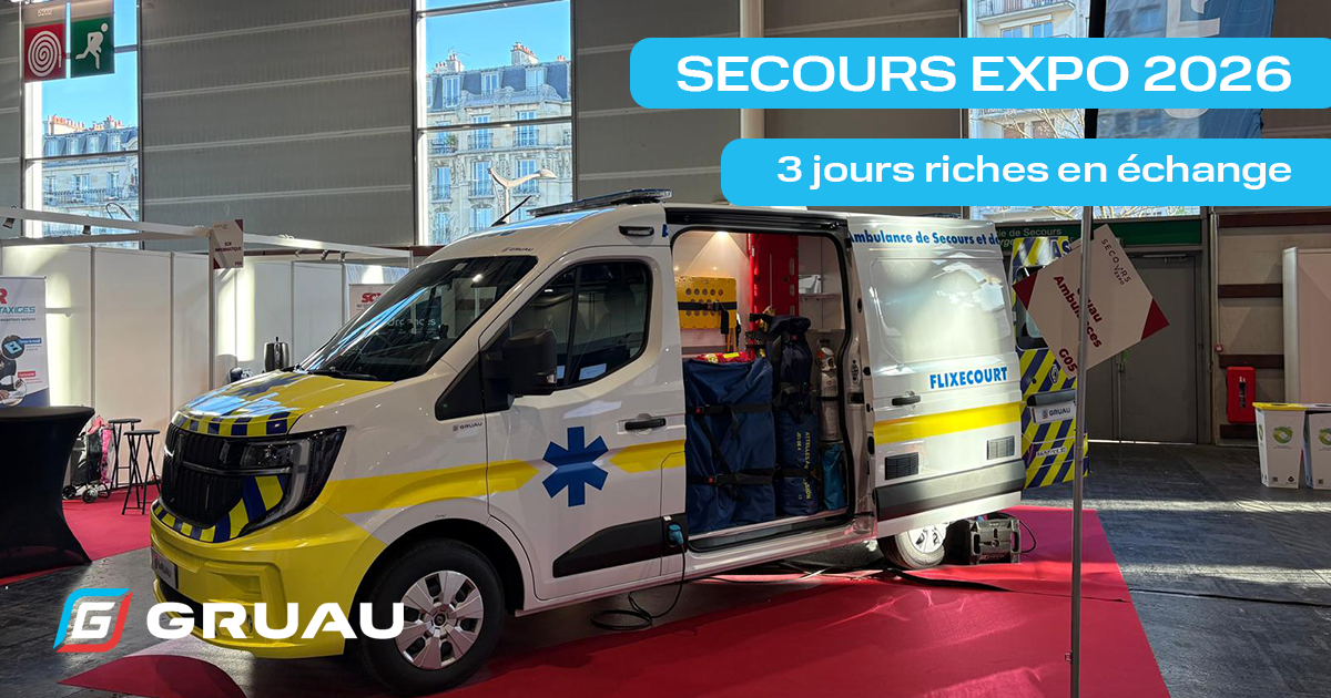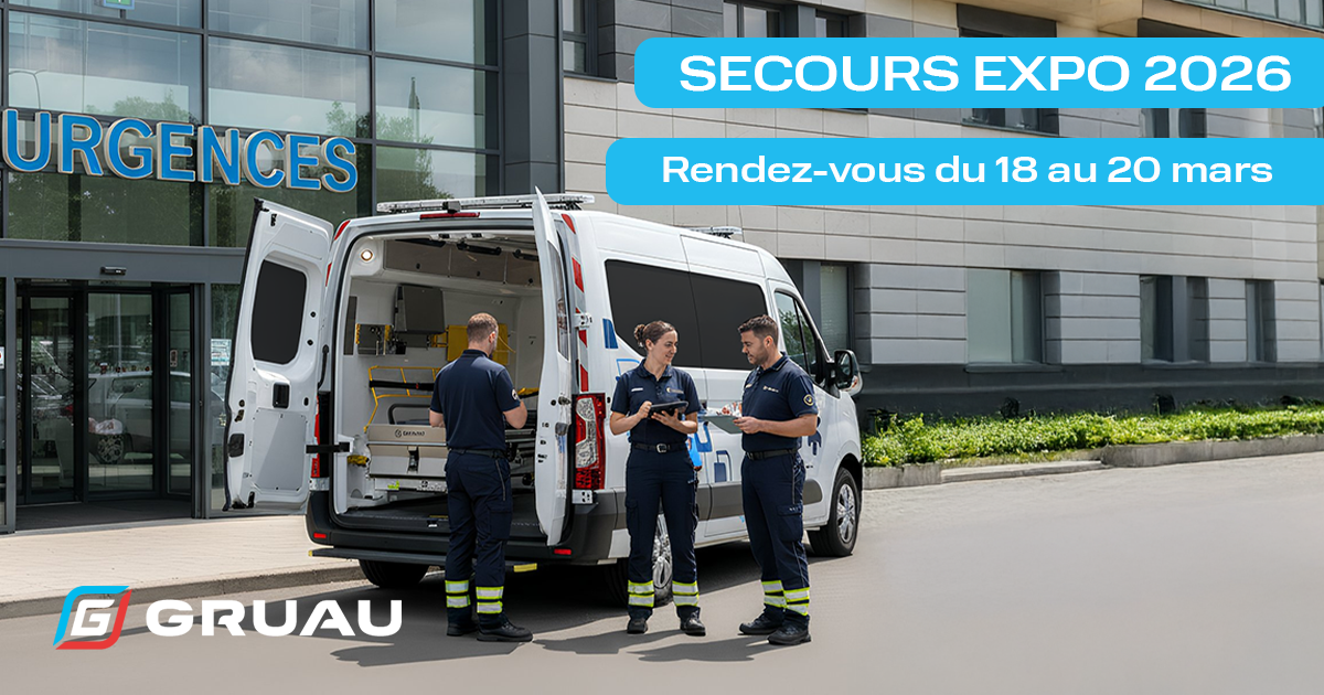 Du 18 au 20 mars 2026, Gruau Ambulances sera présent au Salon Secours Expo à Paris Expo Porte de Versailles. Venez découvrir nos véhicules sanitaires, échanger avec nos équipes et construire ensemble la mobilité sanitaire de demain.